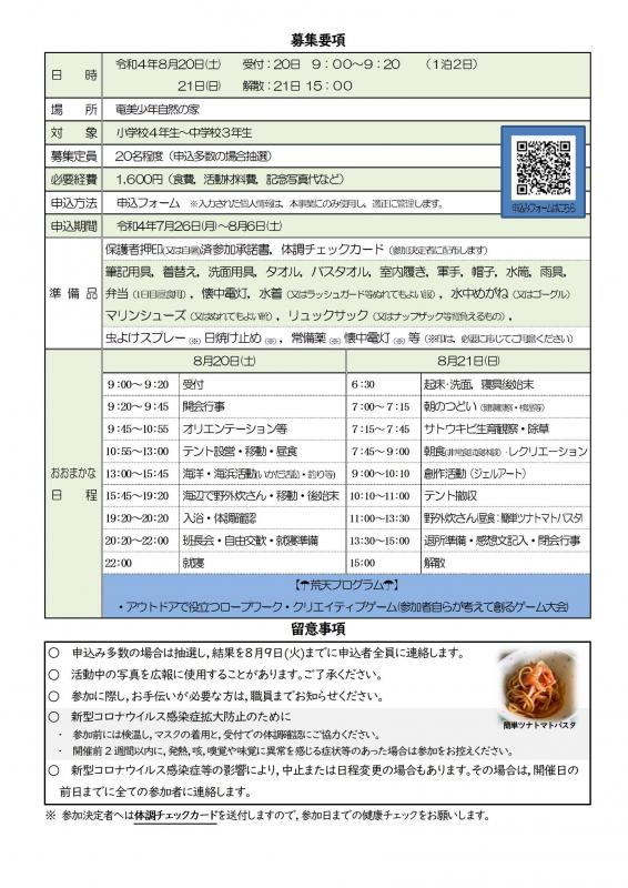 (注)申込多数の場合は抽選等を行い,8月10日(水曜日)までに全ての申込者に結果を連絡します。